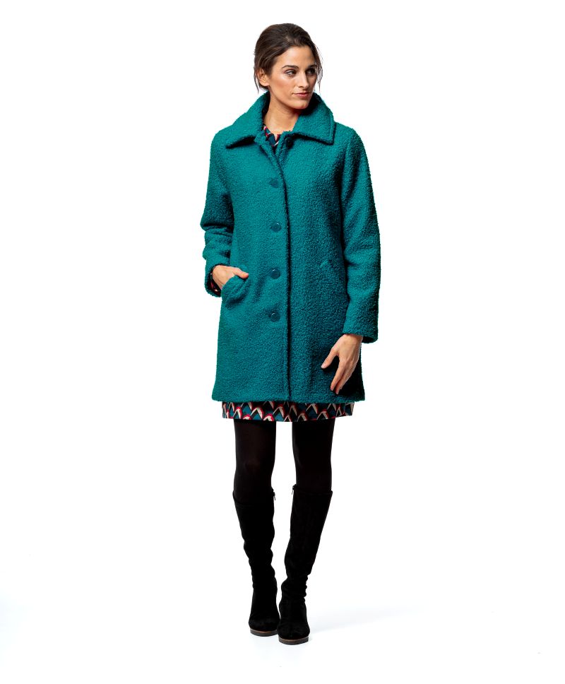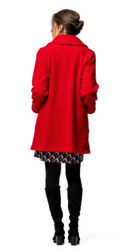 Abrigo de mujer confeccionado en cálido tejido bouclé, perfecto para los días fríos sin renunciar al estilo. De corte recto y elegante, cuenta con cierres de botones delanteros, bolsillos laterales y un cuello clásico que realza su diseño atemporal. Ideal para combinar con vestidos o pantalones, es una prenda versátil para tu fondo de armario. Disponible en negro, rojo y petróleo, tres tonos que se adaptan a cualquier estilo. El abrigo perfecto para completar tus looks de calle.