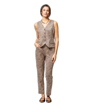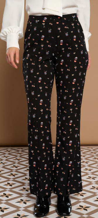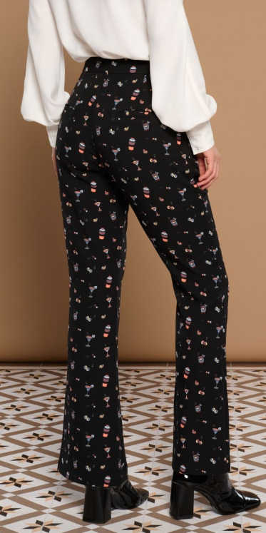 Pantalón de vestir con pernera recta. Cierre con botón y cremallera frontal. Estampado coctel. Bolsillos de doble vivo.