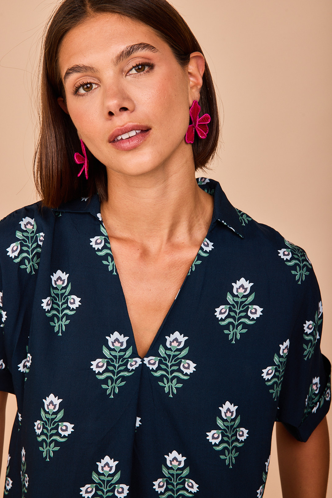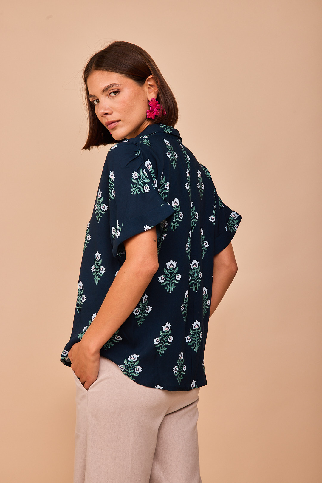 De las camisas más bonitas de la colección, escote en pico, cuello, manga corta pero caída y corte fluido!!