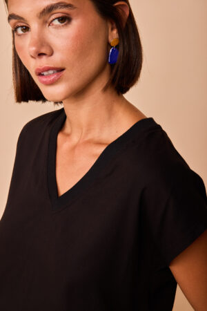 Top de viscosa con escote en pico y liso, es sencillo pero tiene rollo para combinarlo con cualquier parte de abajo estampada de SMILE